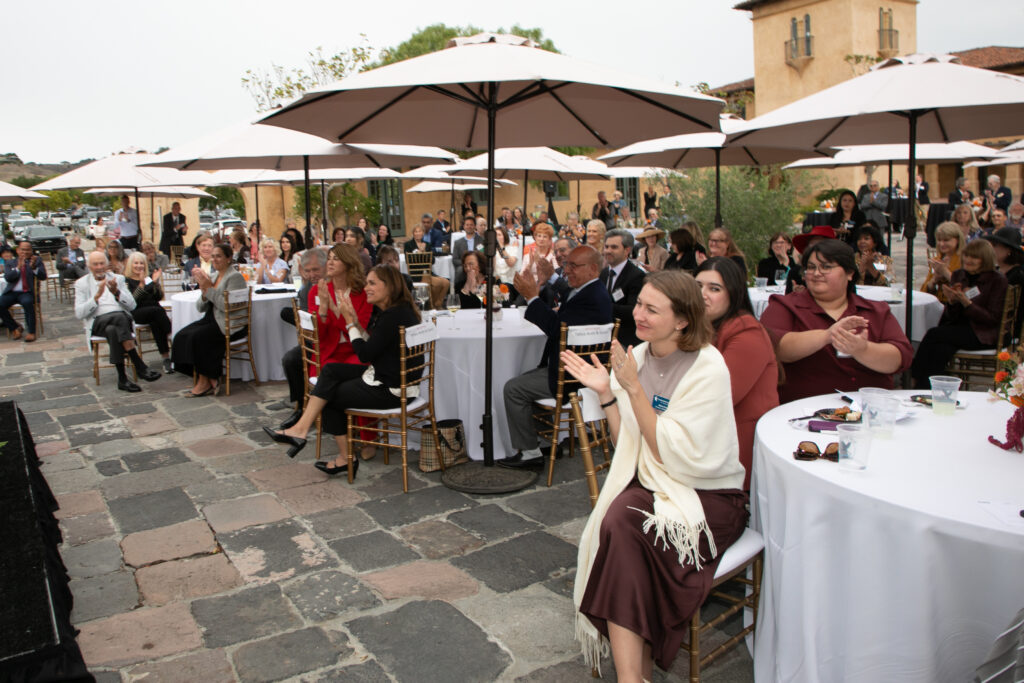 The board of the Community Foundation for Monterey County (CFMC) was proud to present the annual Distinguished Trustee Award to Tonya Antle at the annual Celebration of Philanthropy on October 1, 2025 at The Club at Pasadera (see event slideshow below). Board Chair Elsa Mendoza Jimenez began the program by thanking outgoing board members Kirk Gafill, Francine Rodd and Joe Pezzini. President/CEO Dan Baldwin spoke about Foundation accomplishments and scholarship recipient Kayla Crocker shared her journey from participant to now leading the Girls’ Health in Girls’ Hands program (initially created by the Women’s Fund of the CFMC), which has grown from 25 girls to serving hundreds of girls annually.